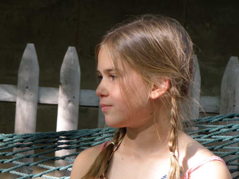 Orginal photo of Phoebe used for the Warhol-like poster. She was mesmerized by beautiful beads, hence the serious look of concentration.